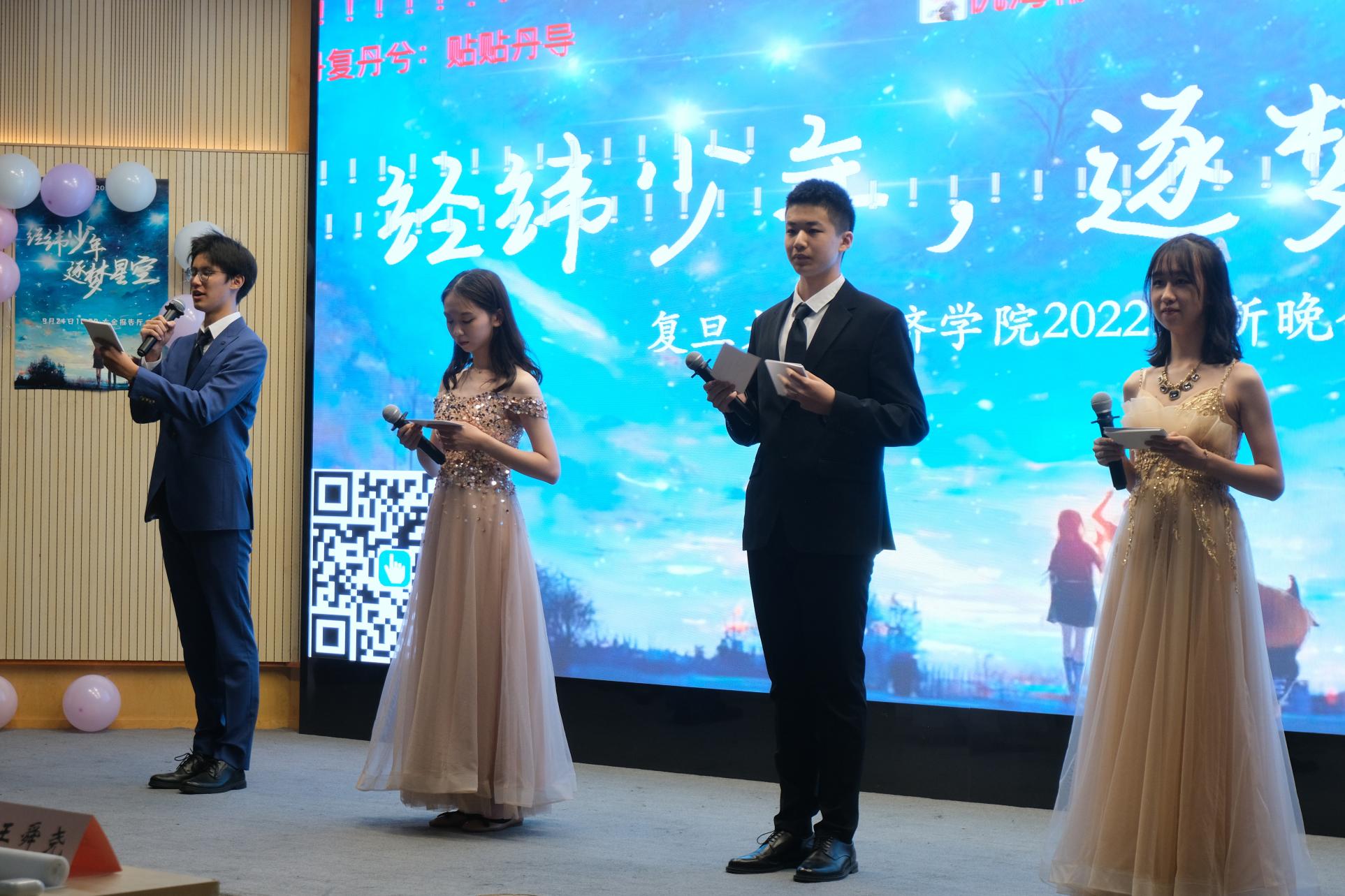 2022年9月24日晚18:30,大家都陆续到达了大金报告厅,参加2022年经济学院的迎新晚会。本次迎新晚会的主题是“经纬少年 逐梦星空”。21、22级的同学们一共带来了15个精彩的节目,每轮节目结束后还有游戏环节和抽奖环节。