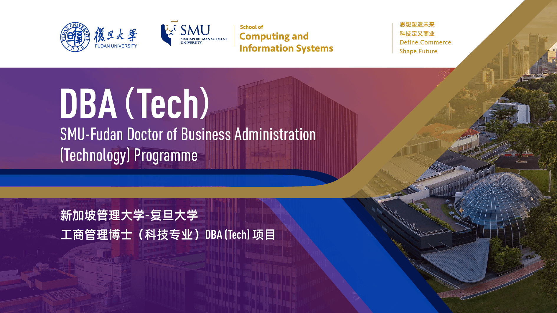 新加坡管理大学-复旦大学工商管理博士-科技专业DBA(Tech)项目是一项跨学科博士课程,融合了前沿商业研究与新兴科技领域,涵盖人工智能、Web3、网络安全、数字治理及金融科技等方向。该项目旨在培养能够弥合尖端科技知识与商业实践应用之间鸿沟的领袖人才,融合新加坡管理大学在计算、数据及数字治理领域的优势,以及复旦大学在经济学、管理学领域的深厚积淀及其遍布中国乃至全球的广泛校友与行业网络。