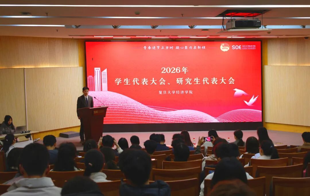 2026年3月22日晚,复旦大学经济学院2026年学生代表大会、研究生代表大会在泛海楼大金报告厅顺利举行。经济学院党委副书记张馨老师、经济学院学工组...