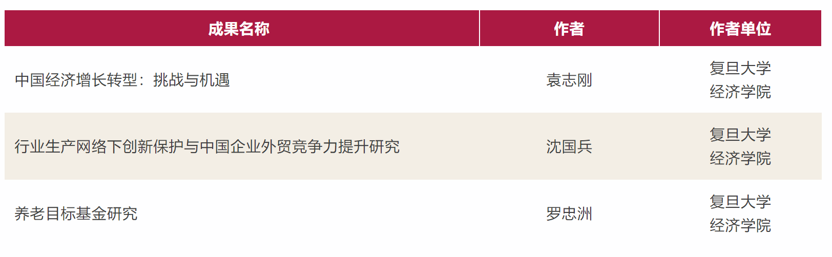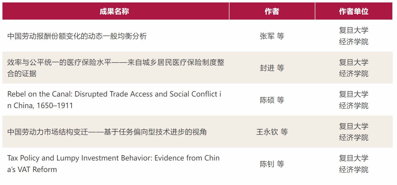 复旦大学经济学院共有16项成果荣获上海市第十七届哲学社会科学优秀成果奖,其中一等奖7项,二等奖9项,具体如下: