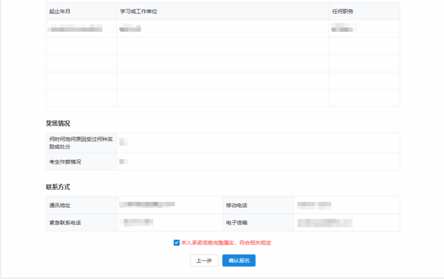 联系方式:填写常用手机号、邮箱,该号码是报考点、招生单位与考生联系的关键信息,务必确保手机号在收到录取通知书之前一直可用。