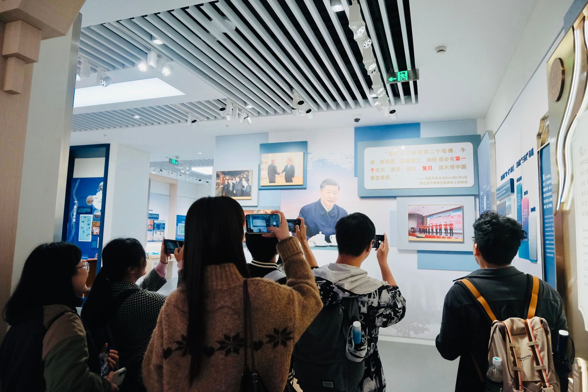 随后,浙大同学在复旦学子的引导下参观“复旦源”,在实地探访中感受复旦大学的百年文脉与历史积淀。参观过程中,两校学生围绕校园文化、学习科研、职业规划等话题展开热烈交流,分享学习心得与成长感悟,在轻松融洽的氛围中增进了彼此的了解与友谊。
