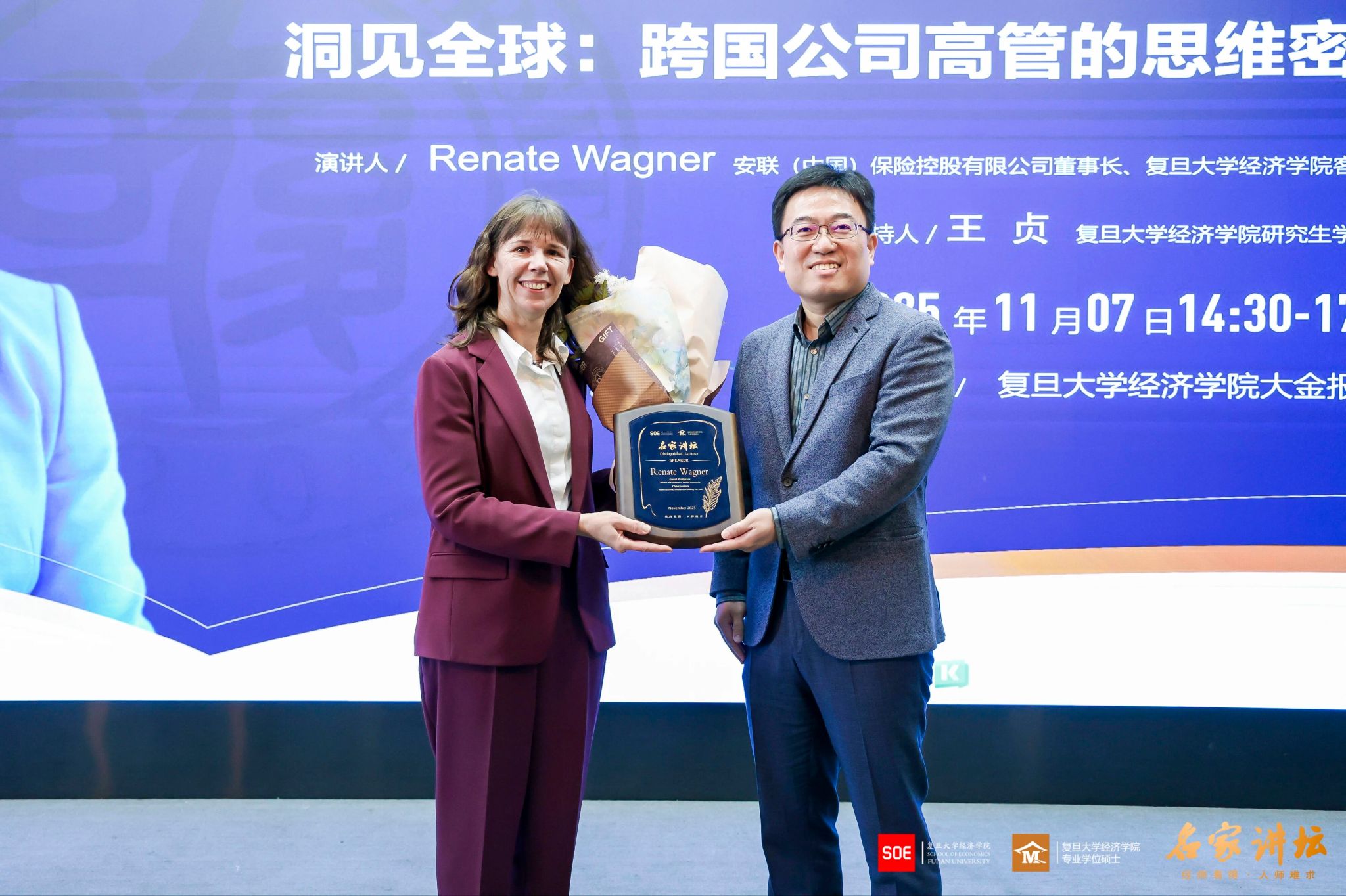 11月7日下午,复旦大学经济学院“名家讲坛”第107期在大金报告厅重磅开讲。本次讲坛,学院邀请到安联(中国)保险控股有限公司董事长、复旦大学经济学院客座教授雷娜特·瓦格纳女士带来题为“洞见全球:跨国公司高管的思维密码”的主题讲座。复旦大学经济学院研究生学术主任王贞老师主持本场讲座,报告厅内座无虚席,氛围热烈。