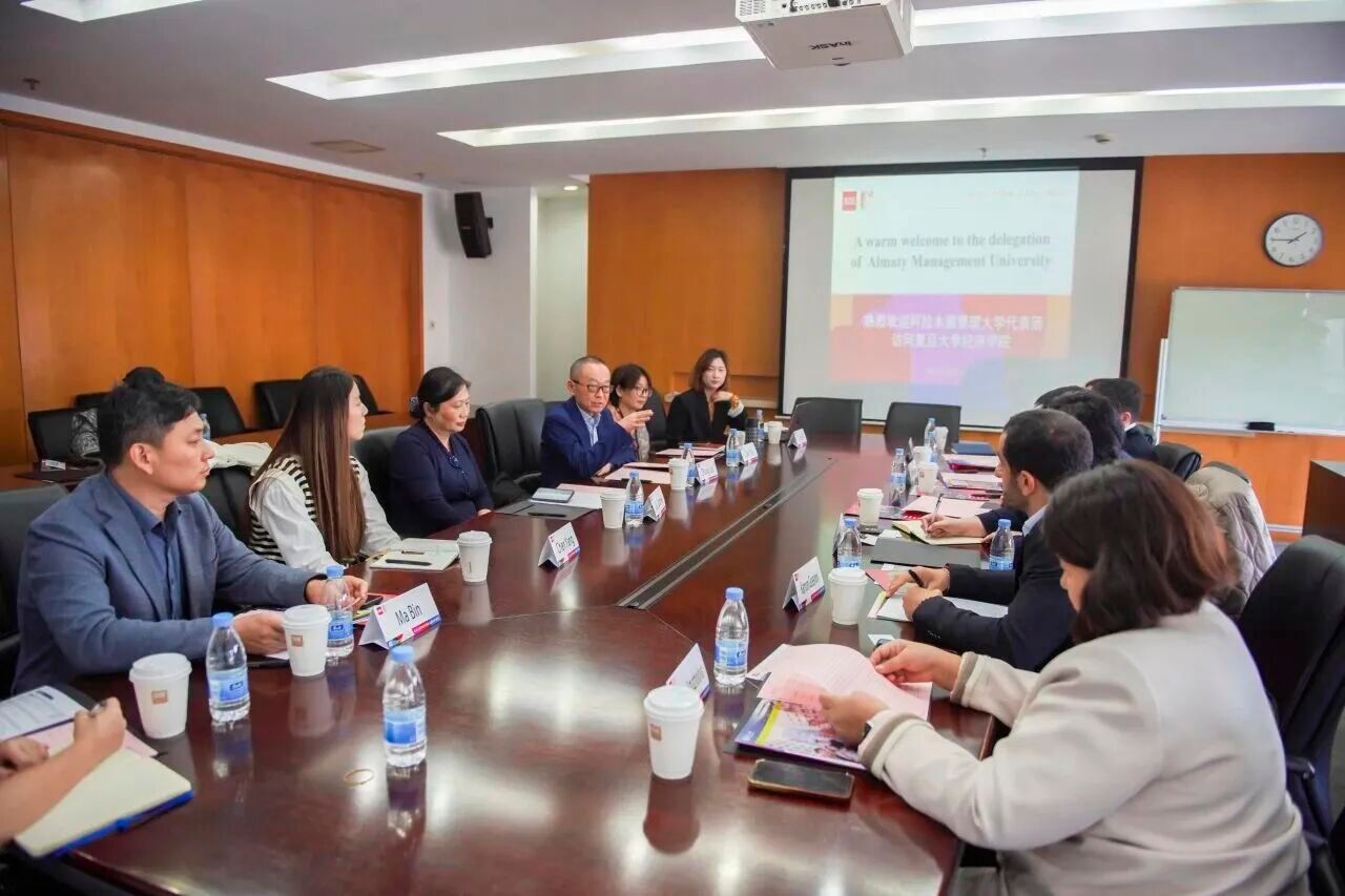 会谈在复旦经济学院714会议室举行。双方回顾了两个院校已有的项目和对外合作基础,并一致认为,在当今全球经济发展与数字化转型的背景下,加强中哈两国顶尖商学院之间的合作具有重要的战略意义。
