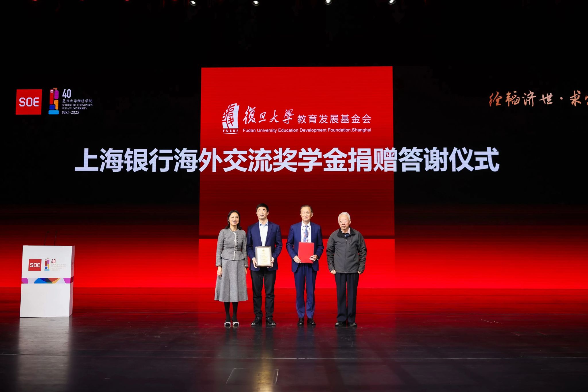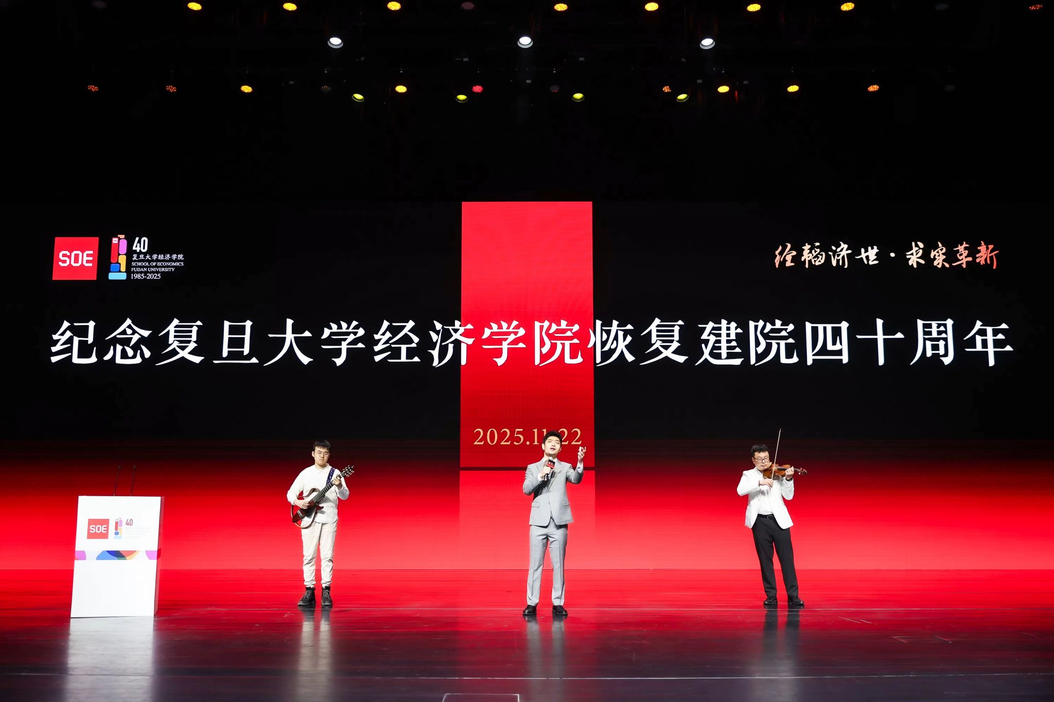 四十载风雨兼程,与时代同频共振;四十载春华秋实,为强国建设赋能。当中国经济迈向高质量发展的崭新征程,中国经济学教育与研究也迎来继往开来的关键节点。2025年11月22日,以“经韬济世·求实革新”为主题的复旦大学经济学院恢复建院四十周年纪念大会在复旦大学相辉堂北堂举行。