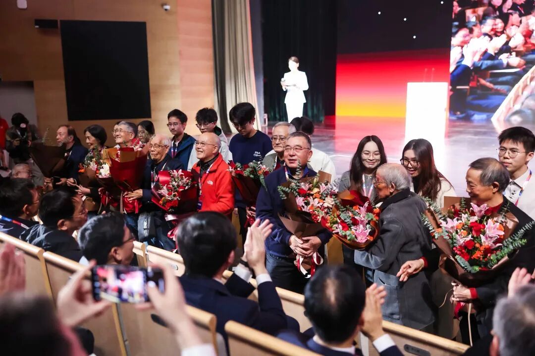 复旦经院的辉煌,离不开一代代先贤大师的奠基与开拓。为致敬他们的智慧与风骨,大会举行了“大师鸿儒墙”揭幕仪式。这面由8115班级校友众筹捐建、承载着经院血脉与记忆的实体墙已矗立于学院新大楼,其线上数字版本也同步启用。参会校领导与嘉宾共同为这面链接历史与未来的“大师鸿儒墙”揭幕,向奠定学院学术基石的先贤致以最崇高的敬意。随后,校领导向戴炳然、邹根宝、胡庆康等德高望重的老先生及其家属代表献花,全场以长时间的热烈掌声,向所有为学院发展呕心沥血的前辈们致敬。