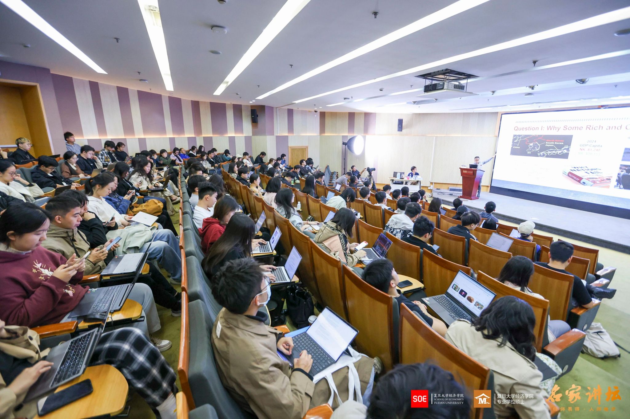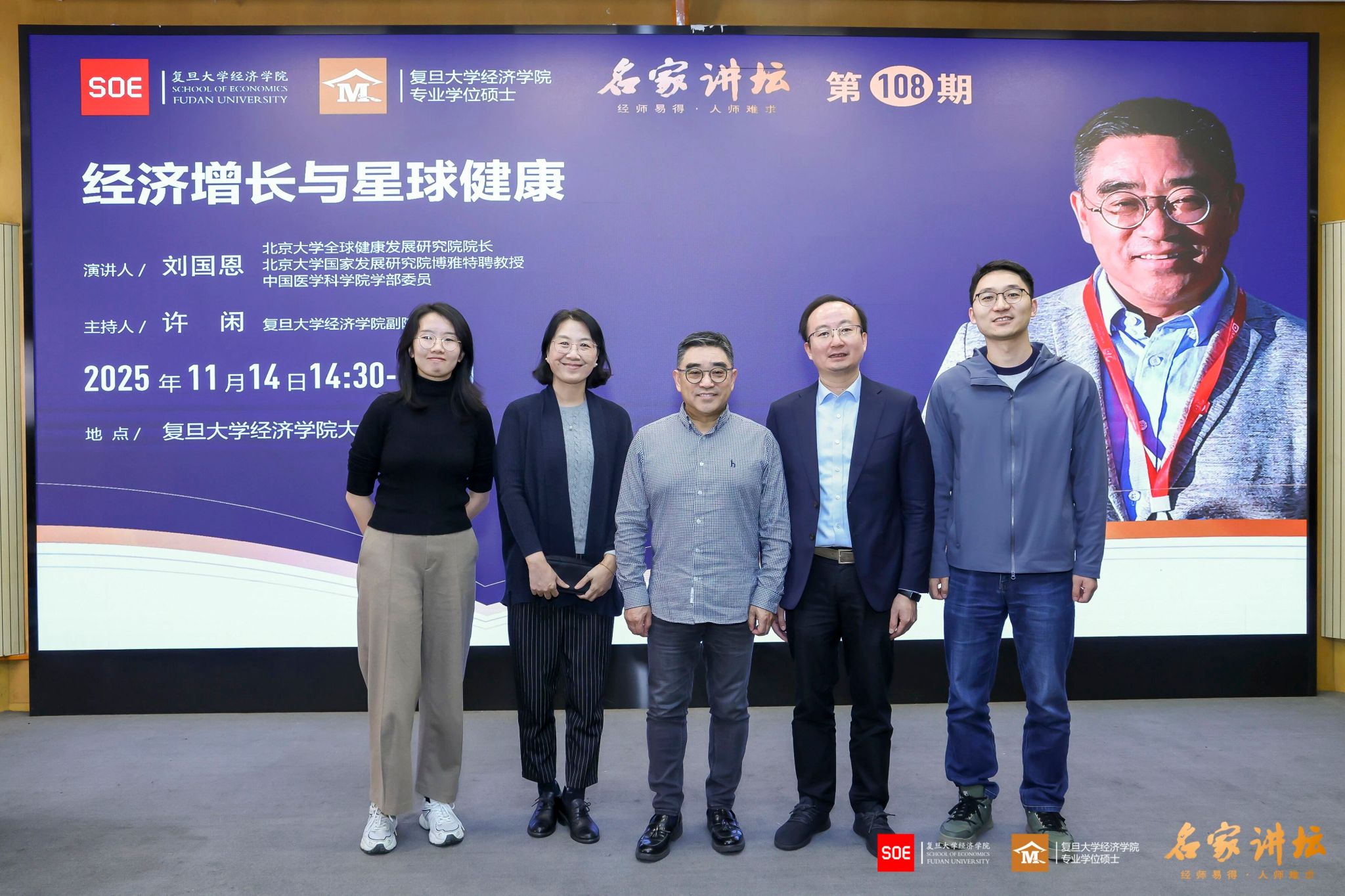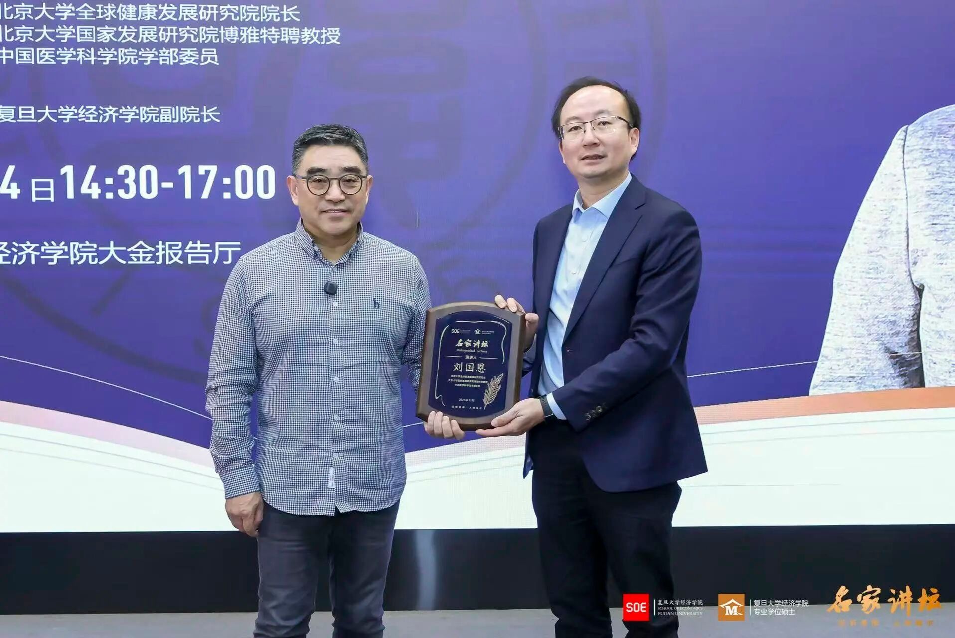 11月14日下午,复旦大学经济学院“名家讲坛”第108期、本学期第八次课程在大金报告厅开讲。北京大学全球健康发展研究院院长、北京大学国家发展研究院博雅特聘教授、中国医学科学院学部委员刘国恩教授面对经济学院专业硕士研究生,带来了以“经济增长与星球健康”为主题的精彩讲座,并介绍了由北京大学全球健康发展研究院牵头构建的人工智能大模型“星球健康坐标系统”(PHAS)。复旦大学经济学院副院长许闲教授主持本场讲座,报告厅内气氛热烈。讲座全程内容丰富、专业性强、极富启迪。