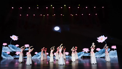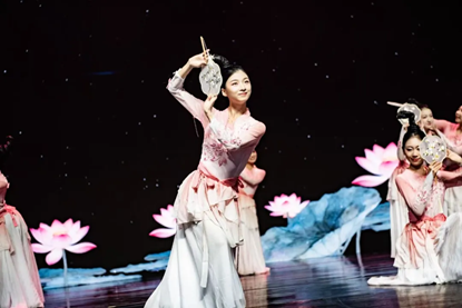 花瓣飞到江南,恰如经济学院恢复建院以来滋养的一方学术沃土。由郑哲凡、赵娅茗、唐霁蕊等同学带来的古典舞《能不忆江南》,赢得了全场的掌声。莲花“香远益清,亭亭净植”的君子之风令人难忘,大师的言传身教也已在四十年来成为了经院人的精神坐标。