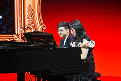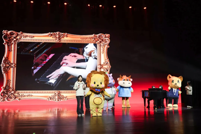 七点,晚会准时开始。随着大幕徐徐拉开,主持人携序曲节目《动物狂欢节》闪亮登场。本场晚会由经济学院青年教师江嘉骏,辅导员宋思瑶,学生江婧亦、徐椿嵛主持。序曲中,由平由植校友与吴健豪同学合奏的欢快旋律,与动物玩偶们憨态可掬的模样相映成趣。