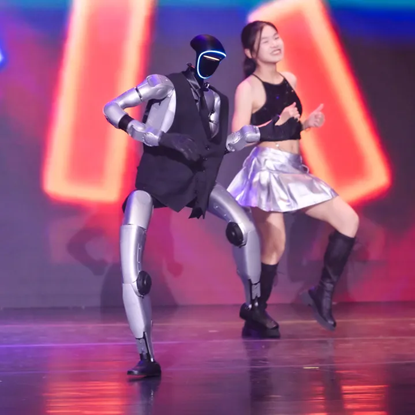 晚会第三篇章的主题,在第一个节目便被诠释得淋漓尽致——由成奕萱、宋词、杨蕴祺、周瑜慧四位同学和机器人舞者共同带来的舞蹈《机械狂想曲》,为观众提供了一段“创新性拉满”的观演体验。