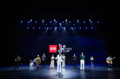 见证了时代前沿的共鸣与争鸣,这一篇章最终在吴尚恒等同学领唱的原创歌曲《Because of SOE》中,回到了全体经院人献礼四十周年院庆的深情告白。随着大屏幕上星云的点亮,时间的指针悄然流转,这场承载着回忆与憧憬的盛会也即将落下帷幕。