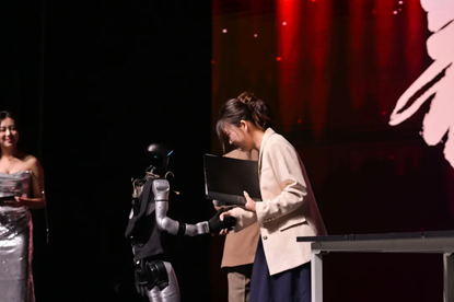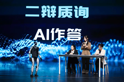 是技术故障,还是演出事故?无论如何,方才还翩翩起舞的机器人如今气势汹汹,誓要与人类辩个高下。来自经济学院辩论队的的谢昀杉、萧静霓、王艺慧三位同学挺身而出,就张军院长选定的辩题“AI产生的经济价值,该不该向数据提供者分红?”迎接其挑战,为现场观众带来了一段别样的思维交锋。
