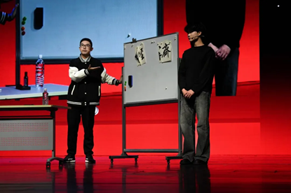 李骏扬、关星陆同学带来的创意表演《经世奇章》,更是通过魔术与书法的结合,献礼经济学院恢复建院四十周末,妙趣横生的魔术设计赢得了现场观众的阵阵喝彩。