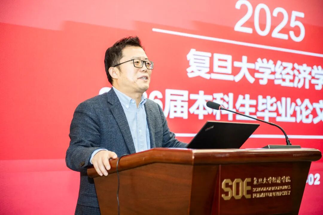 为帮助 2026 届本科生高效推进毕业论文写作,明确写作方向与规范要求,12 月 2 日下午,复旦大学经济学院在大金报告厅举办全年级本科毕业论文指导会议。本科教学院长寇宗来教授、本科教务办张毅老师,以及 2025 届优秀毕业生代表徐奕扬、徐杲菡同学先后进行分享,为同学们搭建起从选题构思到定稿归档的全流程指导桥梁。