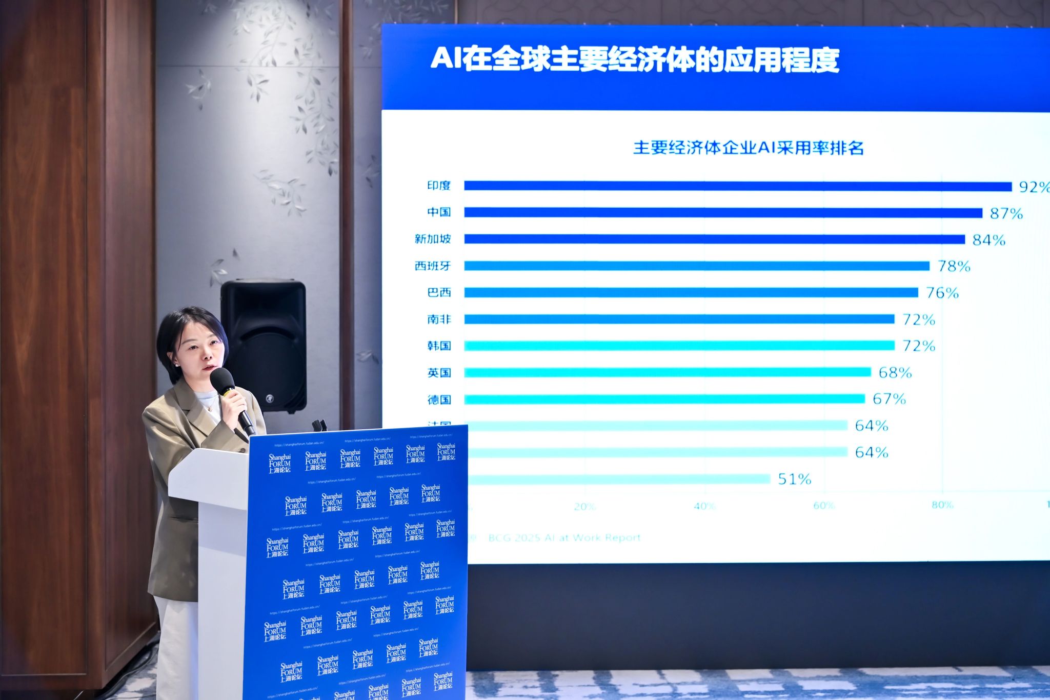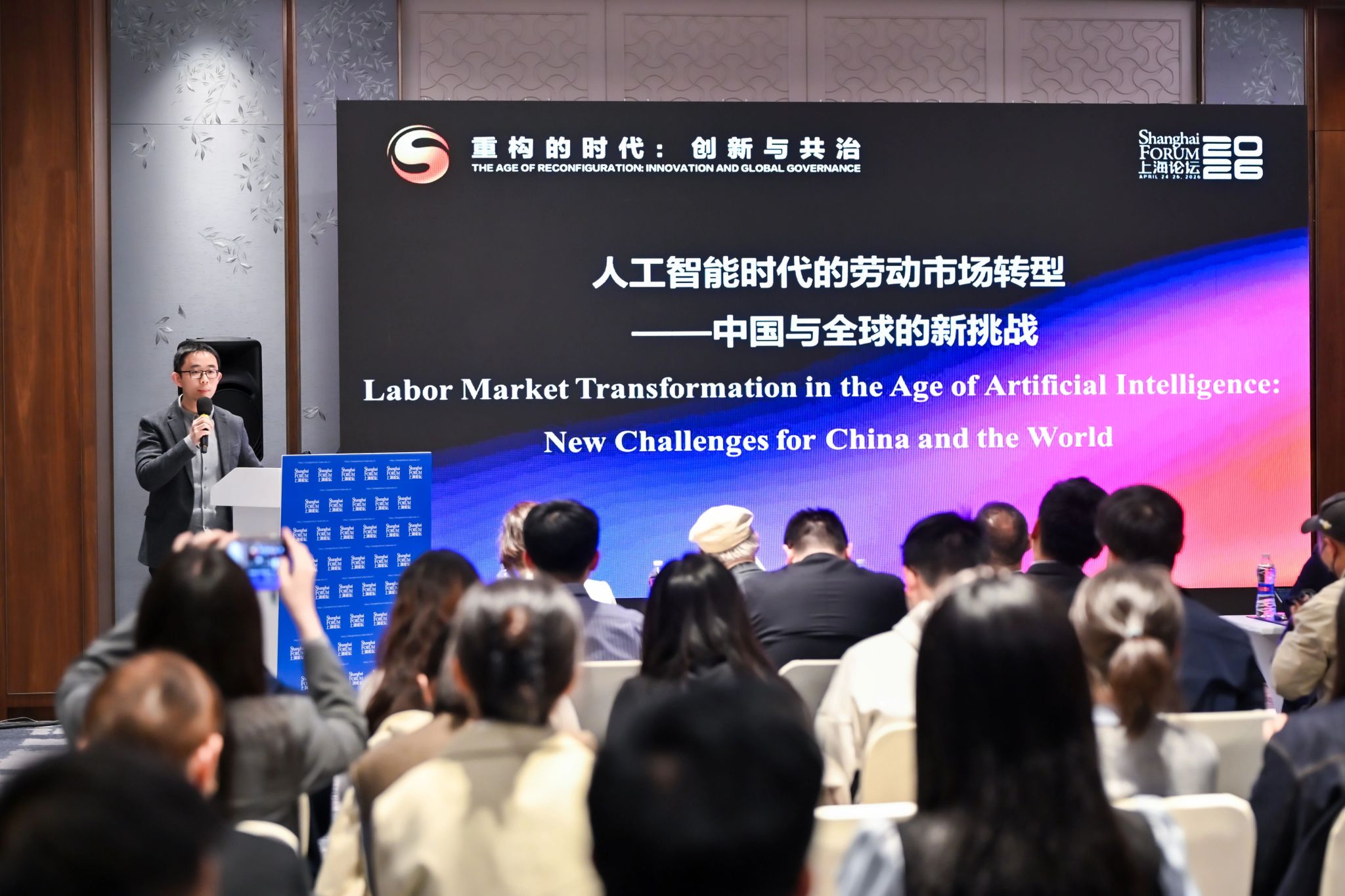 2026年4月24日下午,上海论坛分论坛“人工智能时代的劳动市场转型:中国与全球的新挑战”成功举行。分论坛由复旦大学文科资深教授、经济学院院长张军教授担任主席,复旦大学中国经济研究中心承办,复旦大学经济学院副教授胡博担任主持人。分论坛聚焦人工智能(AI)快速发展背景下劳动力市场所面临的深刻变革。来自中国、美国、韩国、新加坡等一流高校与研究机构的重量级学者,从经济学、管理学、政治经济学等多学科视角出发,结合大数据与行业实证分析,围绕AI对就业结构、技能需求、收入分配及经济增长的影响展开深入讨论。
