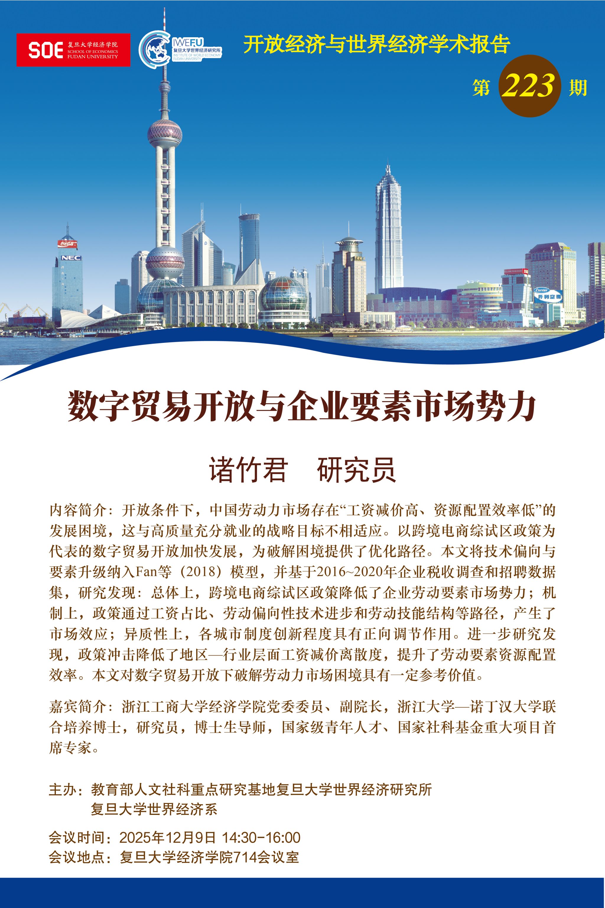 复旦大学世界经济研究所开放经济与世界经济学术报告第223期:数字贸易开放与企业要素市场势力