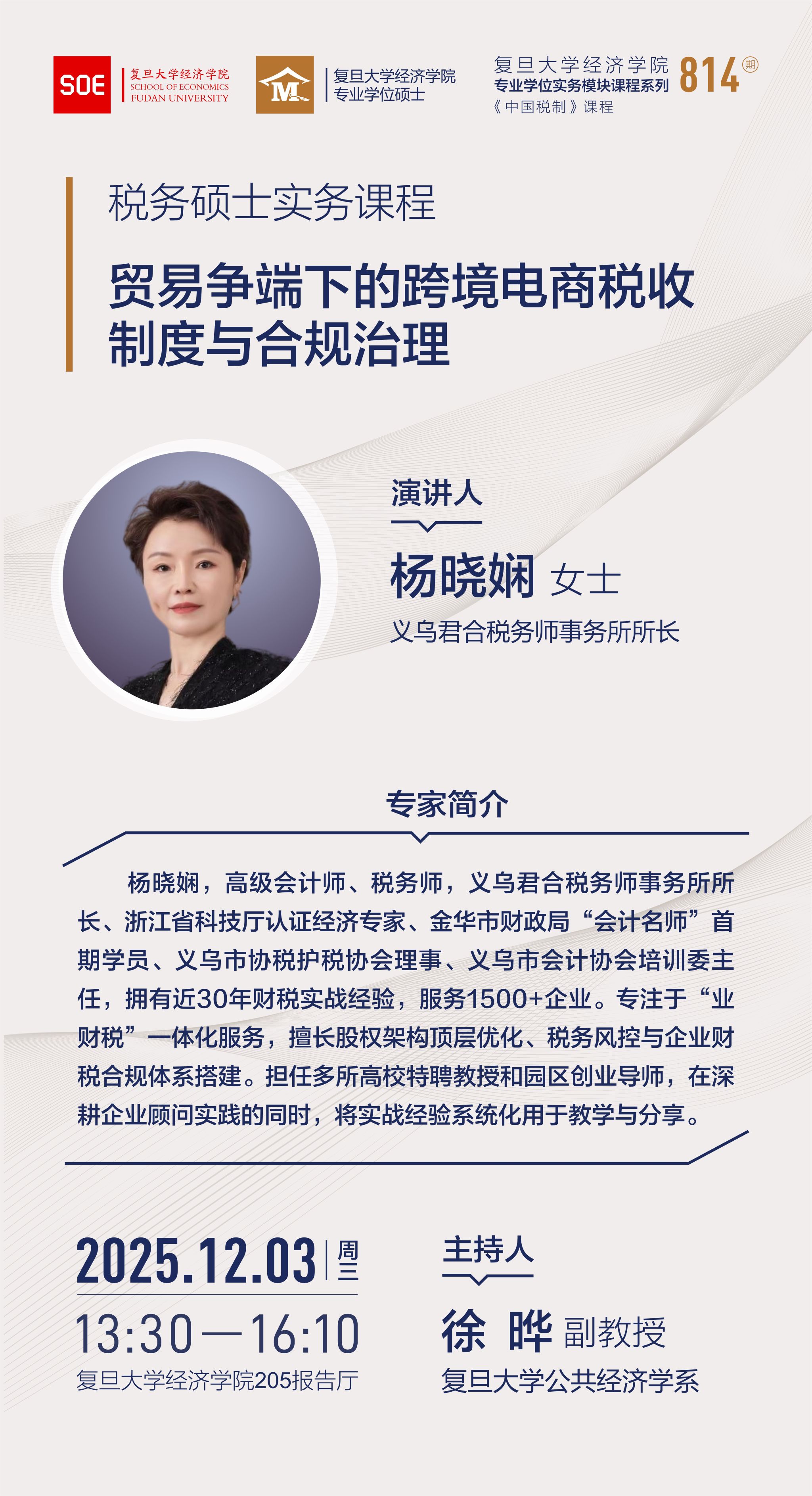 课程预告|杨晓娴:贸易争端下的跨境电商税收制度与合规治理