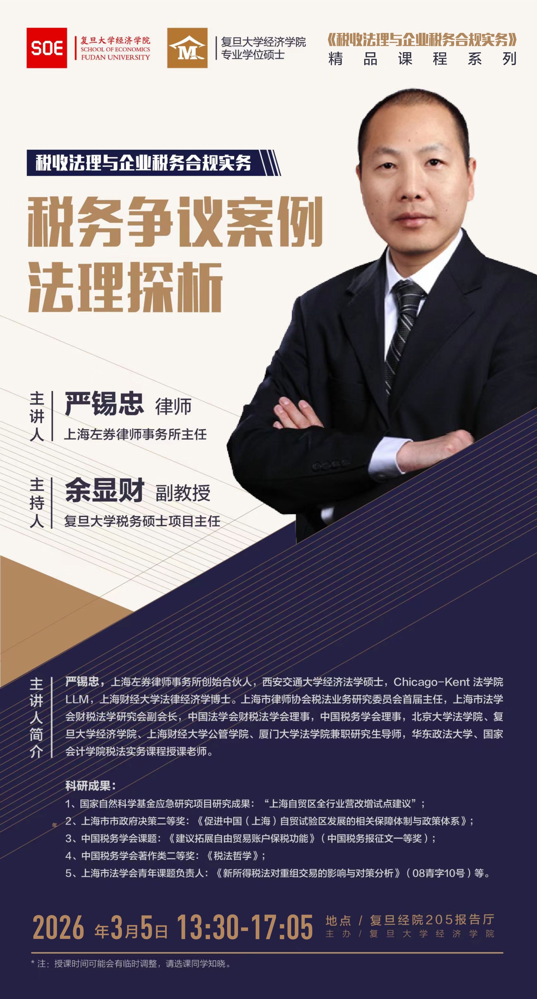 课程预告|严锡忠:税务争议案例法理探析