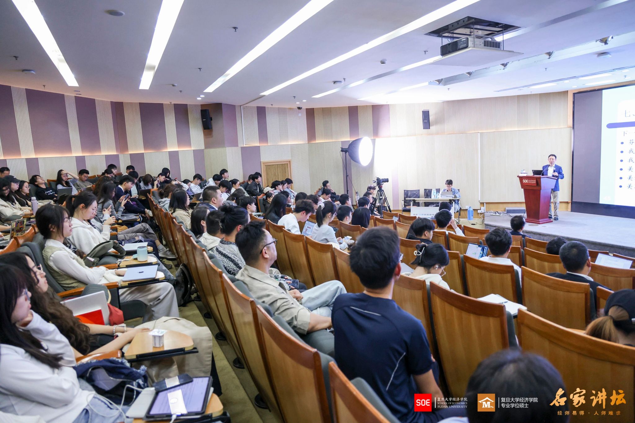 2025年10月24日下午,复旦大学经济学院“名家讲坛”第105期如期举行。复旦大学国际问题研究院院长、复旦大学美国研究中心主任吴心伯教授来到复旦大学经济学院大金报告厅,为经济学院专业硕士研究生带来了主题为“特朗普第二任期中美博弈态势分析”的精彩讲座。复旦大学经济学院副院长许闲教授主持本场讲座,报告厅内气氛热烈,座无虚席。