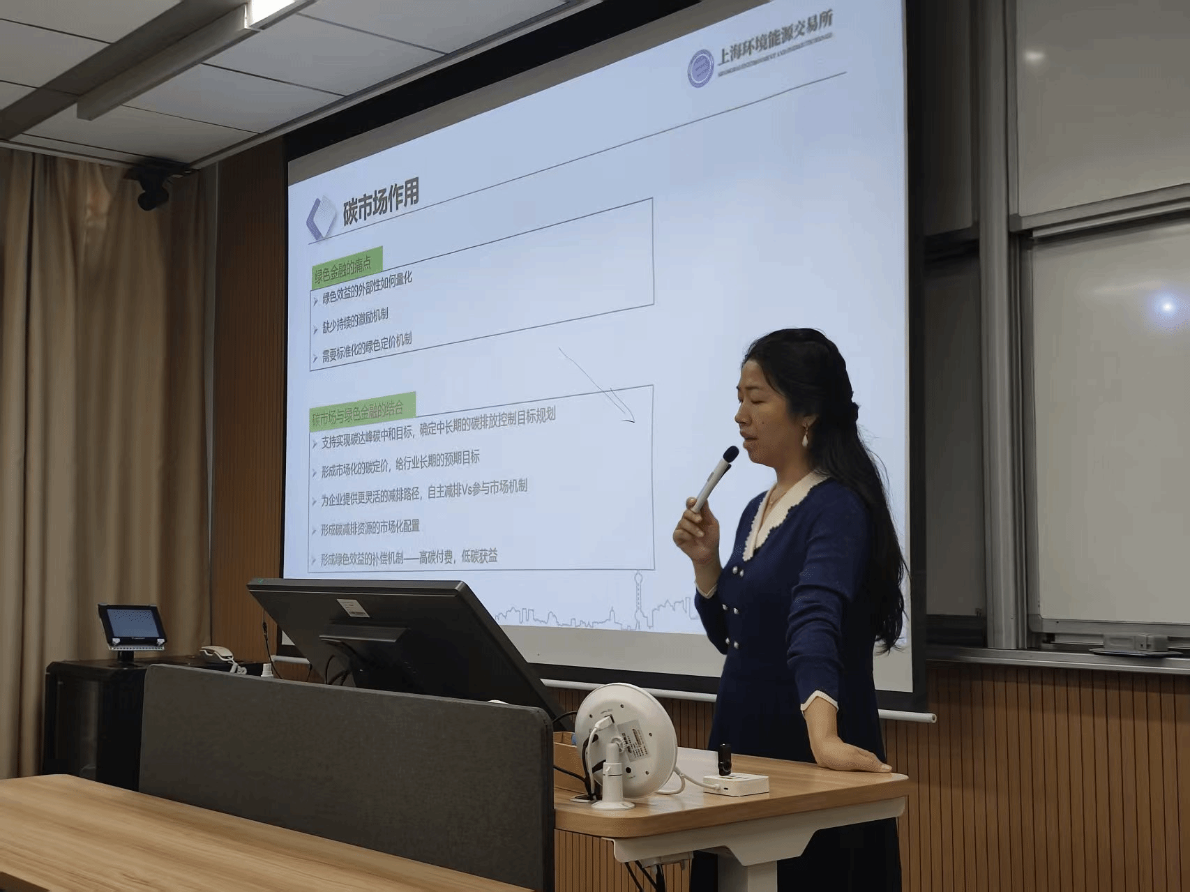 11月13日上午,上海环境能源交易所副总经理李瑾博士应邀来到复旦大学,为经济学院金融、资产评估专业硕士的同学们带来了“碳市场和碳金融的最新实践与探索”主题讲座。本次讲座由复旦大学环境经济研究中心主任李志青教授主持。