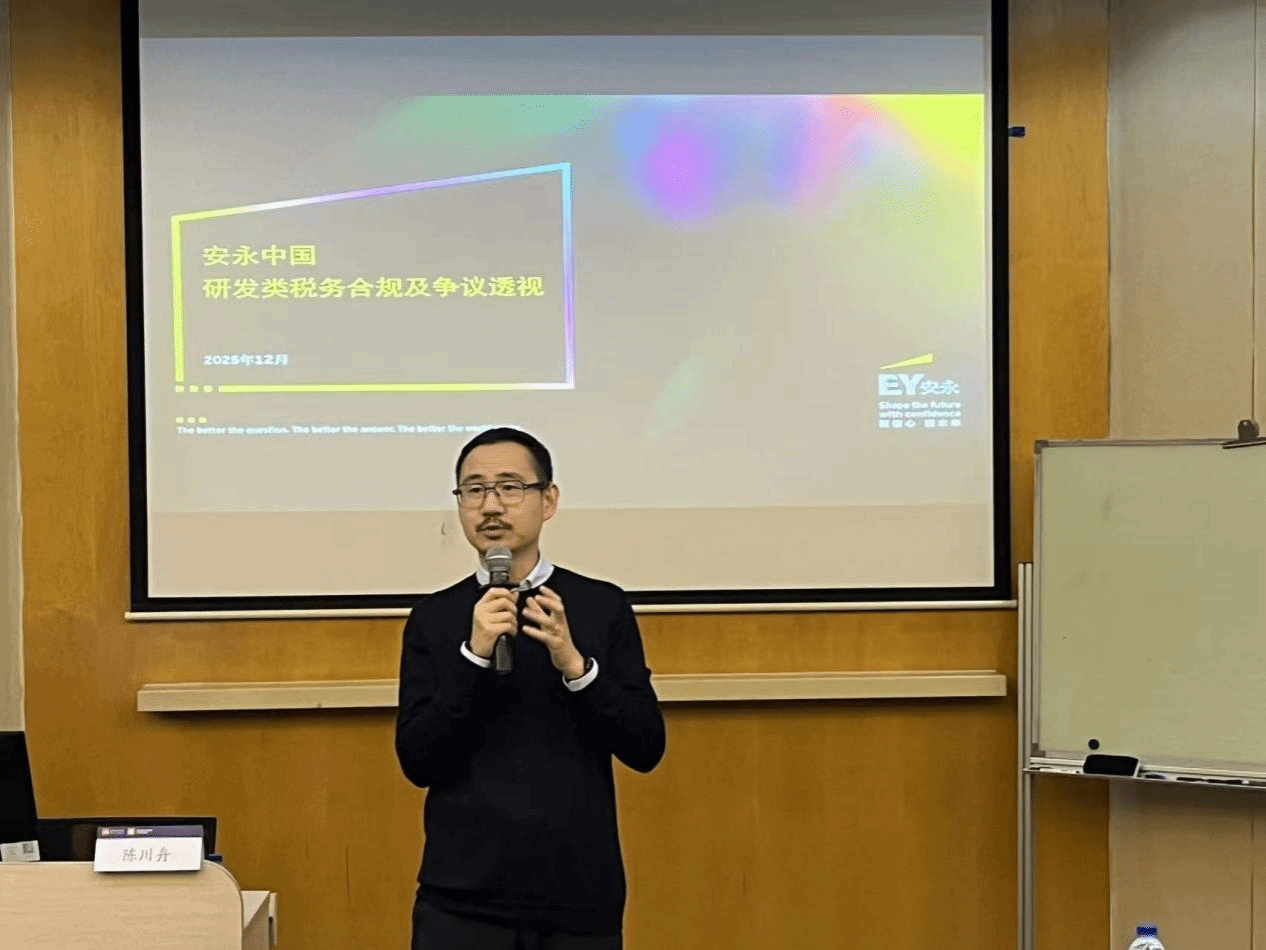 12月12日晚,安永税务合伙人陈川舟先生应邀来到复旦大学经济学院,为经济学院税务专业硕士的同学们带来了安永税务实务系列讲座的第三讲,讲座主题为“研发类税务合规及争议透视”。本次讲座由复旦大学税务硕士项目主任余显财副教授主持。