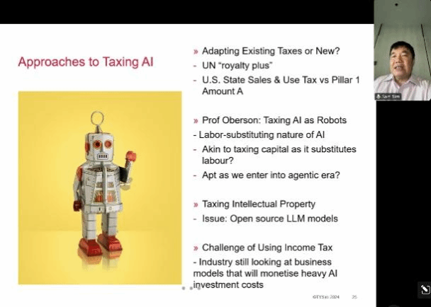 然后,针对“如何对AI征税”这一前沿议题,沈老师提出了多条可能路径:一是借鉴联合国《税收协定范本》的12B条款,将AI服务纳入特许权使用费范畴,增强来源国征税权;二是参考美国各州对数字服务征收销售税的实践,构建适应跨境AI服务的消费税机制;三是探索针对AI资本投入的“机器人税”,以应对劳动力被替代导致的个人所得税基侵蚀;四是从能源消耗角度切入,考虑对AI训练与运行所需电力征税。他特别提醒,当前许多AI企业仍处于高投入、低盈利阶段,传统所得税模式难以捕捉其真实价值,税收制度设计应更具弹性与前瞻性。