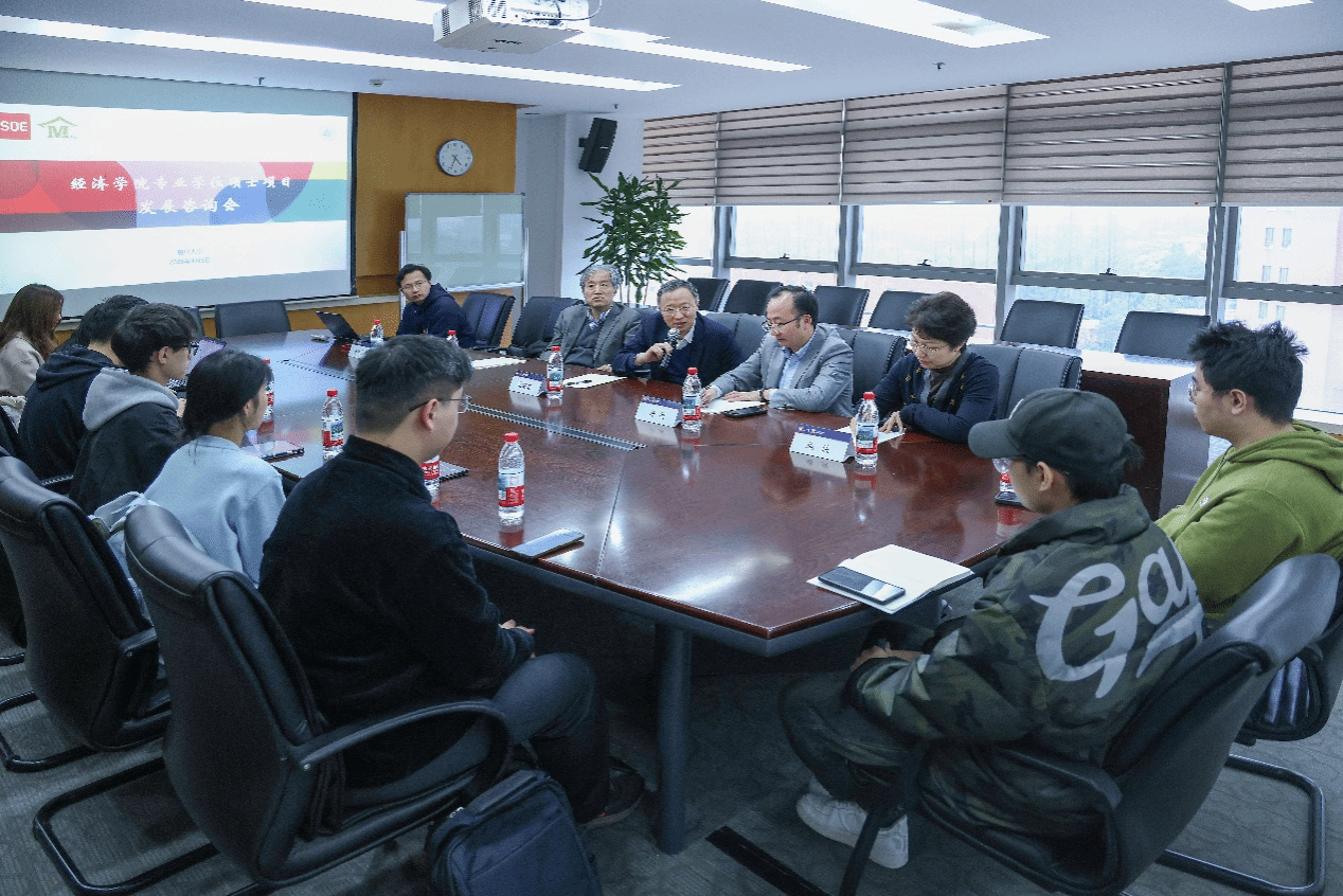 座谈会围绕当前经济金融行业热点、专业硕士培养与职业发展等议题展开。同学们结合自身专业与实习实践,提出了诸多具有代表性的困惑,与会老师给予了详尽而富有启发性的解答。
