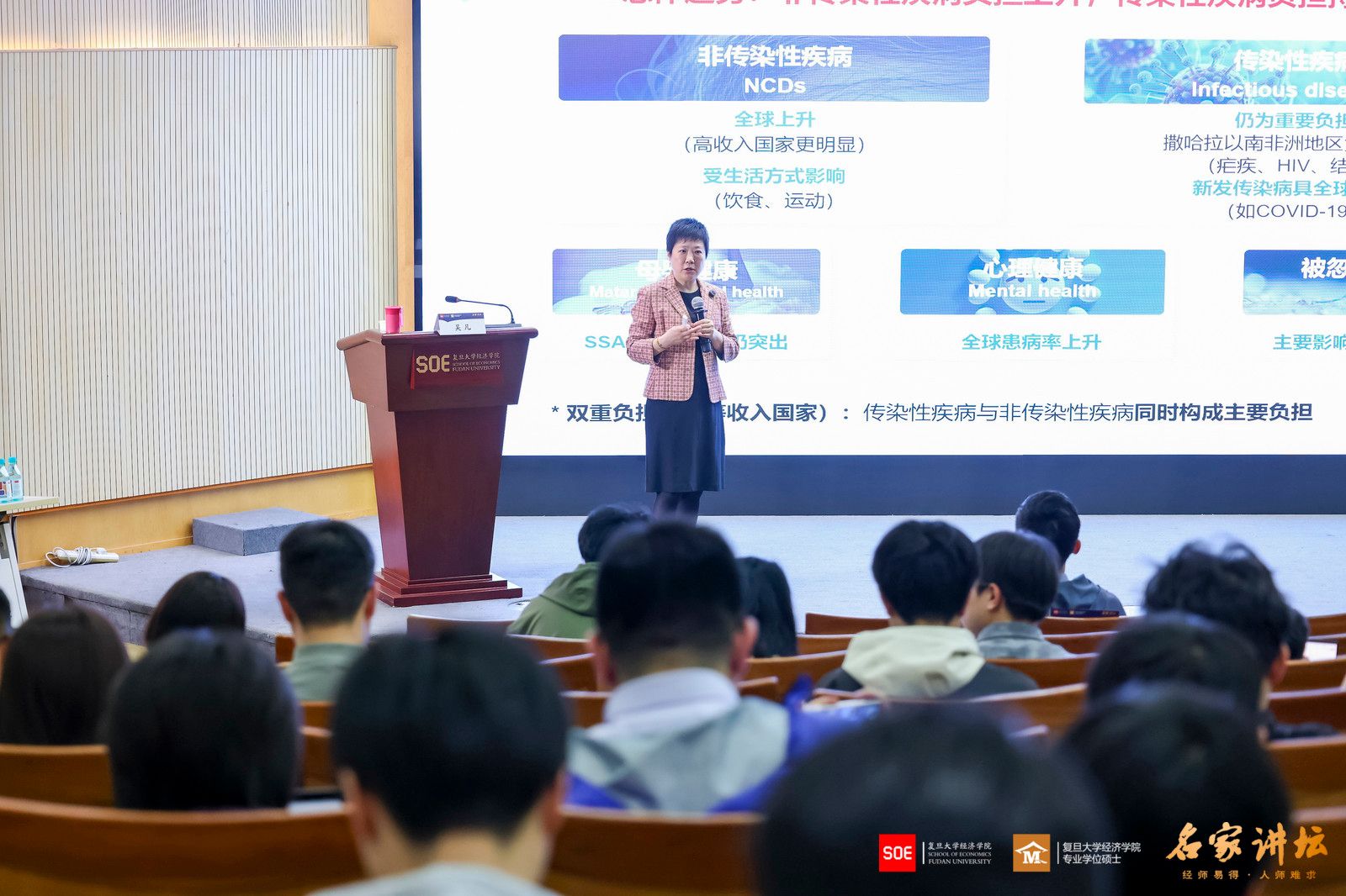 聆听本次吴老师全球健康主题讲座,我对“健康预期寿命”的深层意涵有了更深的理解。老师举的很多例子刷新了我的饮食认知,让我意识到“健康”也是与时俱进的,拓展了分析公共卫生政策的视角。此外,人工智能在疾病监测、药物研发等领域的应用,也为医疗健康事业带来了全新机遇。作为复旦经院的学生,我们应立足专业所长,以经济学思维研究卫生融资配置、健康产业发展与公共政策优化,在跨学科融合中为全球健康治理与民生福祉提升贡献力量。