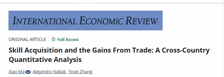 近日,复旦大学经济学院章逸然助理教授的合作论文Skill Acquisition and the Gains From Trade: A Cross-Country Quantitative Analysis在经济学领域顶尖期刊International Economic Review发表论文。