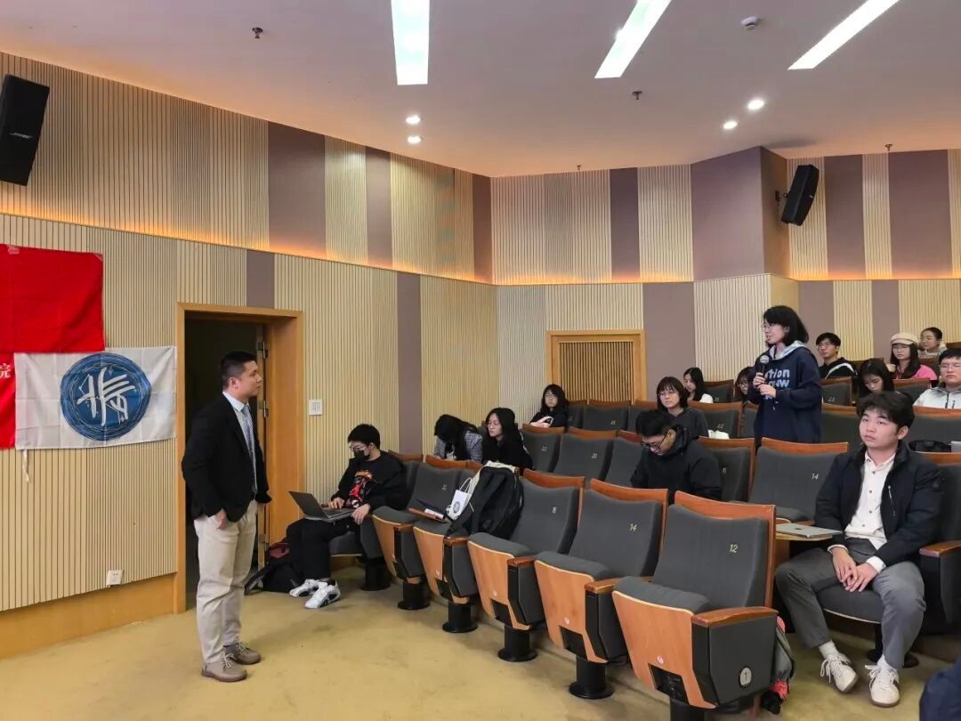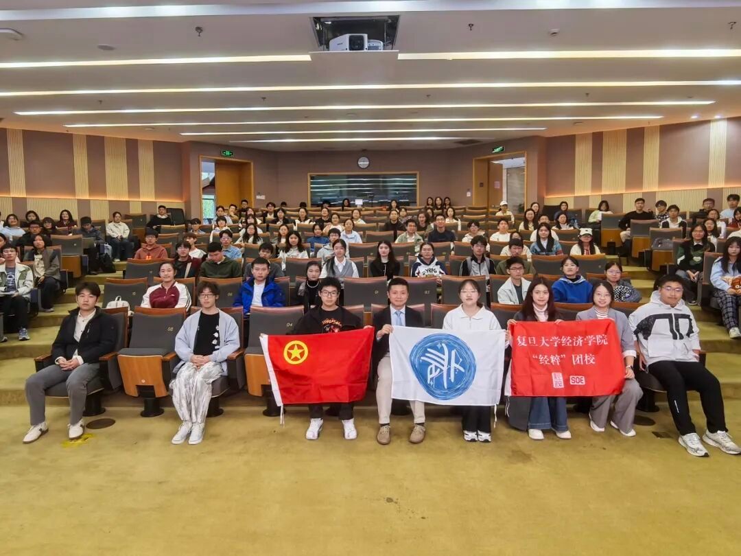 2025年11月15日下午,在复旦大学邯郸校区经济学院大金报告厅内,北辰团校与经粹团校联合主题团课如期开展。本次团课由喻浩东老师主讲,以“法学研究中的经济思考”为主题,借刑法学与经济学对话的实例,通过老师讲座与师生研讨,让同学们既拓宽了学术视野,又体悟到了跨学科研究的魅力。
