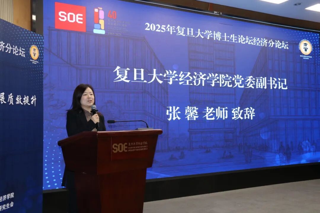 在开幕式上,复旦大学经济学院党委副书记张馨老师代表经济学院党委致辞,向出席论坛的嘉宾和来自全国各高校的青年学子表示感谢和欢迎。张馨老师表示,正值全校深入学习贯彻习近平总书记重要贺信精神、全面落实党的二十届四中全会精神、科学谋划“十五五”发展蓝图的重要时期,本届论坛以“破局与重构:新质生产力赋能经济结构优化与发展质效提升”为主题,正是对贺信精神的深刻践行,是对国家战略的积极响应,更是对时代命题的学术担当。本届论坛不仅数量创下新高,质量也显著提升,充分展现了青年学子对中国经济现实问题的深刻洞察。张馨老师希望同学们珍惜这次学术盛宴,在思想碰撞中启迪智慧,在交流互鉴中开阔视野,要坚持立足中国实际,解决中国问题,真正将论文写在祖国大地上,把学问做进人民心坎里。