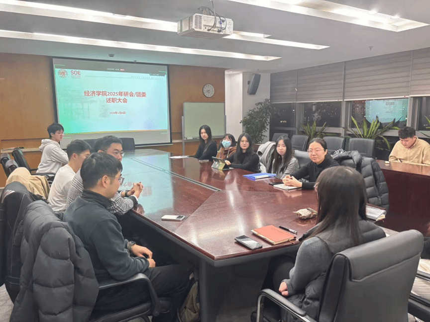 2026年1月6日,经济学院2025年研会/团委述职大会顺利举行。经济学院学工办副主任王蕾明老师、团委书记赵靓靓老师、团委副书记高岚金天老师出席会议,听取研究生会述职汇报。会上,团委(研)与研究生会各部门系统回顾了本年度在重点工作推进、品牌项目深化、制度机制建设以及队伍能力提升等方面的工作成效,并就存在问题与改进方向进行了深入剖析。