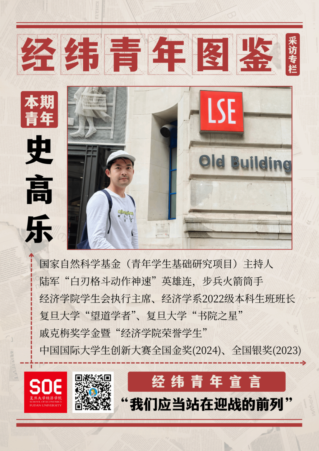 近日,国家自然科学基金委员会公布了第三届“国家自然科学基金青年学生基础研究项目(本科生)”资助名单,经济学院2022级经济学专业本科生史高乐同学主持的项目成功入选,这也是我校人文社科类本科生首次获得该项目资助。从课堂学习到成功立项,他经历了怎样的思考与实践?接下来,就让我们一同走进他这段关于尝试与探索的心路历程。