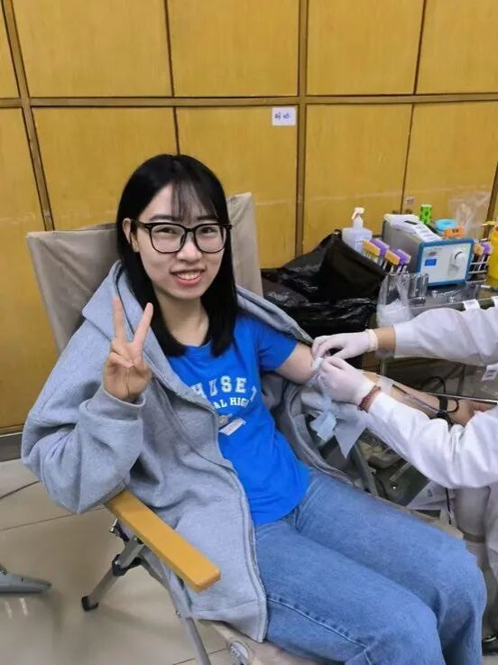 肖瑜婧于正大体育馆献血