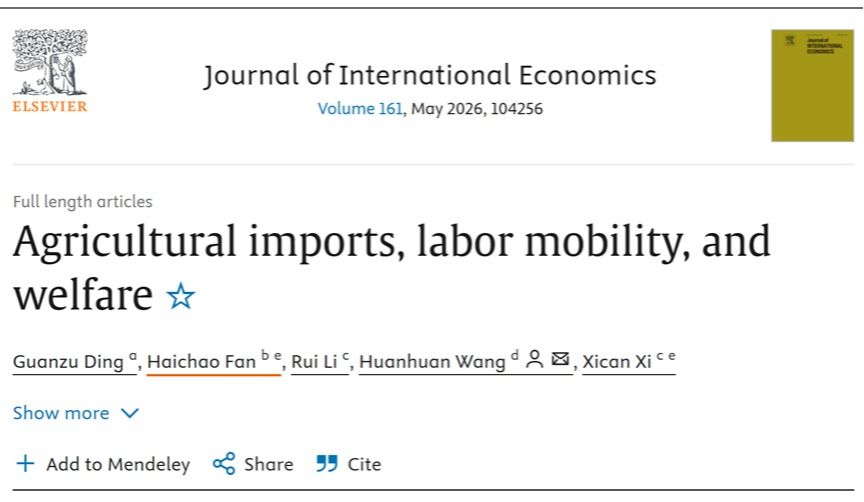 近期,复旦大学经济学院樊海潮教授、奚锡灿副教授、李睿助理教授与两位合作者(华东师范大学教授王欢欢、华东理工大学助理教授丁关祖)的研究论文 Agricultural Imports...